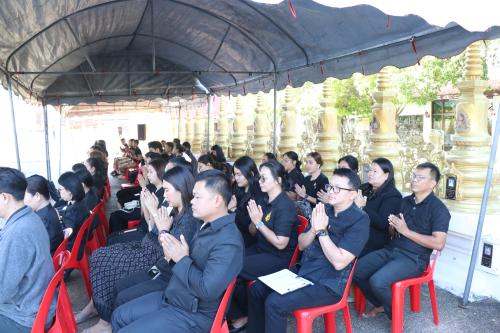 💠ในการนี้ นางราณี วงศ์ลุน พัฒนาการจังหวัดร้อยเอ็ด มอบหมายให้นางบงกชกาญจน์ ทวดเสนา ผู้อำนวยการกลุ่มงานส่งเสริมการพัฒนาชุมชน นางเสาวลักษณ์ เบ็ญเจิด ผู้อำนวยการกลุ่มงานสารสนเทศการพัฒนาชุมชน นางสาวอัจฉรา ทิพย์ทำมา ผู้อำนวยการกลุ่มงานประสานและสนับสนุนการบริหารงานพัฒนาชุมชน นายบุญครอง เรืองแสน ผู้อำนวยการกลุ่มงานยุทธศาสตร์การพัฒนาชุมชน และเจ้าหน้าที่พัฒนาชุมชน สำนักงานพัฒนาชุมชนจังหวัดร้อยเอ็ด ร่วมพิธีบำเพ็ญกุศล เพื่ออุทิศถวายพระราชกุศล ณ พระอุโบสถวัดบึงพระลานชัย วัดบึงพระลานชัย (พระอารามหลวง) ตำบลในเมือง อำเภอเมืองร้อยเอ็ด จังหวัดร้อยเอ็ด ในครั้งนี้ด้วย