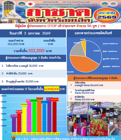 9.วันที่ 3 มกราคม 2569 มียอดจำหน่ายทั้งสิ้น 513,200 บาท ยอดสั่งซื้อ - บาท และยอดจำหน่ายออนไลน์ - บาท