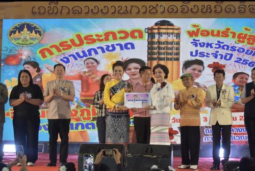 💠 วันเสาร์ที่ 3 มกราคม 2569 เวลา 16.00 น. ณ เวทีกลางงานกาชาดจังหวัดร้อยเอ็ด อำเภอเมืองร้อยเอ็ด จังหวัดร้อยเอ็ด นายชัชวาลย์ เบญจสิริวงศ์ ผู้ว่าราชการจังหวัดร้อยเอ็ด ร่วมรับชมการประกวดฟ้อนรำ “สีสันแห่งภูมิปัญญา เมืองสาเกตนคร“ โดยมีนายพิชัยยา ตุระซอง รองผู้ว่าราชการจังหวัดร้อยเอ็ด นางพัชรินทร์ ตุระซอง รองนายกเหล่ากาชาดจังหวัดร้อยเอ็ด และรองประธานแม่บ้านมหาดไทย นางราณี วงศ์ลุน พัฒนาการจังหวัดร้อยเอ็ด พร้อมหัวหน้าส่วนราชการ ที่เกี่ยวข้อง และประชาชนชาวร้อยเอ็ด เข้าร่วมรับชมการประกวดฯ