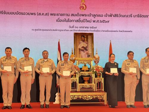 💠 นายอรรษิษฐ์ สัมพันธรัตน์ ปลัดกระทรวงมหาดไทย เป็นประธานพิธีรับมอบบัตรอวยพร (ส.ค.ส.) พระราชทานของสมเด็จพระเจ้าลูกเธอ เจ้าฟ้าสิริวัณณวรี นารีรัตนราชกัญญา เนื่องในโอกาสขึ้นปีใหม่ พ.ศ. 2569 ณ ศูนย์ประชุมอเนกประสงค์กาญจนาภิเษก มหาวิทยาลัยขอนแก่น ตำบลในเมือง อำเภอเมืองขอนแก่น จังหวัดขอนแก่น โดยมี นางจิณณารัชช์ สัมพันธรัตน์ นายกสมาคมแม่บ้านมหาดไทย พร้อมด้วยผู้ว่าราชการจังหวัดในพื้นที่ภาคตะวันออกเฉียงเหนือ 20 จังหวัด ผู้สนองพระกรุณาธิคุณผ่านโครงการ "ผ้าไทยใส่ให้สนุก" และผู้ที่ได้รับรางวัลพระราชทานในงาน Silk Festival 2025 รวม 95 คน เข้าร่วม และนายชัชวาลย์ เบญจสิริวงศ์ ผู้ว่าราชการจังหวัดร้อยเอ็ด พร้อมด้วยนายทวีศักดิ์ จัตุวัน ผู้ได้รับเหรียญทอง ระดับประเทศ และนายยุทธนา น้ำกระจาย ผู้ได้รับรางวัลชมเชย ระดับประเทศ จากการประกวดผ้าลายพระราชทาน “ผ้าลายสิริราชพัสตราภรณ์” ได้เข้าร่วมพิธีรับมอบดังกล่าว