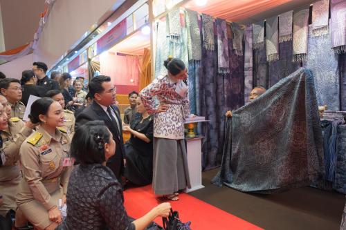 💠 การจัดแสดงผลงานครั้งนี้ เป็นเวทีสำคัญในการสะท้อนศักยภาพของชุมชนในการน้อมนำแนวพระดำริ “ผ้าไทยใส่ให้สนุก” มาประยุกต์ใช้ในการพัฒนาผลิตภัณฑ์ผ้าไทยและงานหัตถกรรม โดยมุ่งเน้นการใช้สีจากธรรมชาติ วัตถุดิบจากเส้นใยและพืชพรรณภายในชุมชน ควบคู่การออกแบบที่สอดคล้องกับเทรนด์ร่วมสมัย ตามแนวคิด “Sustainable Fashion : แฟชั่นแห่งความยั่งยืน” อันเป็นการยกระดับภูมิปัญญาท้องถิ่นสู่เศรษฐกิจสร้างสรรค์และตลาดสากล ซึ่งจังหวัดร้อยเอ็ด มีผู้ผลิต ผู้ประกอบการ OTOP ประเภทผ้า เข้าร่วมกิจกรรมในครั้งนี้ จำนวน 4 ราย ได้แก่