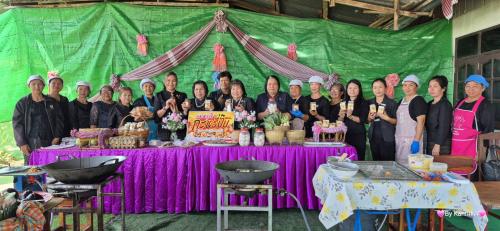 จุดที่ 1 กลุ่มทำขนมกะหรี่ปั๊บ หมู่ที่ 1 ตำบลสระแก้ว อำเภอพนมไพร จังหวัดร้อยเอ็ด ซึ่งเป็นกลุ่มผู้ผลิตผู้ประกอบการ OTOP ที่สมาชิกได้กู้ยืมเงินกองทุนพัฒนาบทบาทสตรี และประสบผลสำเร็จในการประกอบอาชีพ และนำผลิตภัณฑ์เข้าสู่กระบวนการพัฒนา พัฒนารูปแบบผลิตภัณฑ์ บรรจุภัณฑ์ให้มีความหลากหลาย และเพิ่มผลิตภัณฑ์ให้มีความหลากหลาย ตรงตามความต้องการของตลาด โดยมีแหล่งจำหน่ายในพื้นที่ อำเภอพนมไพร และในพื้นที่จังหวัดร้อยเอ็ด ซึ่งผู้ตรวจราชการกรมฯ ได้แนะนำให้เพิ่มช้องทางการตลาดโยการจำหน่ายผ่านช่องทางออนไลน์ และพัฒนาสินค้าให้มีความหลากหลาย