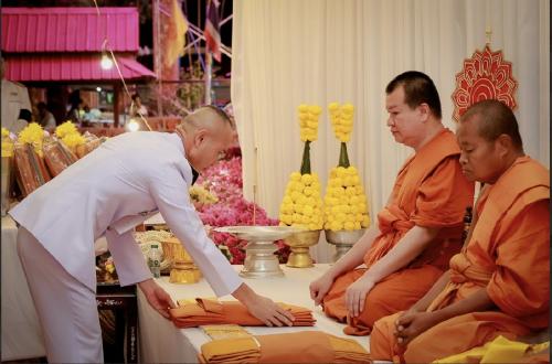 💠โอกาสนี้ได้เชิญผ้าไตรและเครื่องไทยธรรมพระราชทาน ถวายแด่พระอุปัชฌาย์และพระกรรมวาจาจารย์ รวมทั้งพระราชทานเครื่องอัฐบริขาร จำนวน 93 ชุด แก่ผู้เข้าร่วมโครงการอุปสมบท เพื่อเป็นสิริมงคล และเงินพระราชทานร่วมทำบุญ จำนวน 100,000 บาท สนับสนุนการประกอบศาสนกิจอย่างสมบูรณ์
