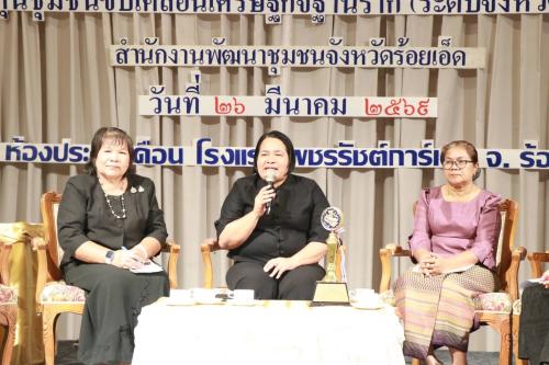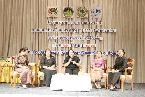💠วันพฤหัสบดีที่ 26 มีนาคม 2569 ณ ห้องประดับเดือน โรงแรมเพชรรัชต์การ์เด้น อำเภอเมืองร้อยเอ็ด จังหวัดร้อยเอ็ด นายชัชวาลย์ เบญจสิริวงศ์ ผู้ว่าราชการจังหวัดร้อยเอ็ด มอบหมายให้นายพิชัยยา ตุระซอง รองผู้ว่าราชการจังหวัดร้อยเอ็ด เป็นประธานเปิดโครงการมหกรรมการออม 52 ปี ทุนชุมชนขับเคลื่อนเศรษฐกิจราก (ระดับจังหวัด) เนื่องในวันคล้ายวันก่อตั้งกลุ่มออมทรัพย์เพื่อการผลิต ครบรอบ 52 ปี โดยมีนางนวลจันทร์ ศรีมงคล ผู้ตรวจราชการกรม ปฏิบัติหน้าที่ผู้อำนวยการศูนย์ศึกษาและพัฒนาชุมชนอุบลราชธานี, นางราณี วงศ์ลุน พัฒนาการจังหวัดร้อยเอ็ด, นายสมศักดิ์ สาโดด วัฒนธรรมจังหวัดร้อยเอ็ด, นางวาโย ตึกประโคน ผู้แทนหัวหน้าสำนักงานจังหวัดร้อยเอ็ด, นายวัชรพล สุนทรพินิจ ผู้แทนคลังจังหวัดร้อยเอ็ด, นางสาวสุภาพร โสมอินทร์ ผู้แทนสถิติจังหวัดร้อยเอ็ด, นางสาวชญานิศ บุญศิริ ผู้แทนท่องเที่ยวและกีฬาจังหวัดร้อยเอ็ด, นางสาวกัลยา เสนามาตย์ ผู้แทนเกษตรจังหวัดร้อยเอ็ด, นางเสาวลักษณ์ เบ็ญเจิด ผู้อำนวยการกลุ่มงานสารสนเทศการพัฒนาชุมชน, นางสาวอัจฉรา ทิพย์ทำมา ผู้อำนวยการกลุ่มงานประสานและสนับสนุนการบริหารงานพัฒนาชุมชน พัฒนาการอำเภอและเจ้าหน้าที่พัฒนาชุมชน เข้าร่วมโครงการฯ