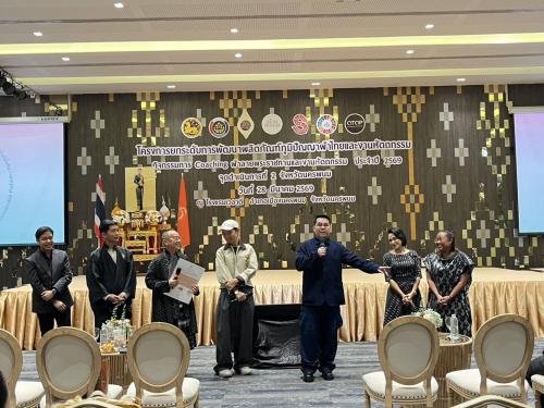 💠 การจัดกิจกรรม Coaching ในครั้งนี้ กรมการพัฒนาชุมชนมีเป้าหมายสำคัญเพื่อพัฒนาทักษะและยกระดับศักยภาพของผู้ผลิตและผู้ประกอบการ OTOP ด้านผ้าไทยและงานหัตถกรรม ให้สามารถต่อยอดภูมิปัญญาท้องถิ่นสู่ผลิตภัณฑ์ที่มีคุณภาพและตอบโจทย์ตลาดร่วมสมัย โดยมีกลุ่มเป้าหมายเป็นผู้ผลิต ผู้ประกอบการจาก 20 จังหวัดในภาคตะวันออกเฉียงเหนือ รวม 103 คน รวมถึงสมาชิกกลุ่มศิลปาชีพ ซึ่งถือเป็นกำลังสำคัญในการขับเคลื่อนเศรษฐกิจของภูมิภาค ทั้งนี้ โครงการดังกล่าวดำเนินการภายใต้การน้อมนำแนวพระดำริของสมเด็จพระเจ้าลูกเธอ เจ้าฟ้าสิริวัณณวรี นารีรัตนราชกัญญา ที่ทรงพระราชทานแบบลายผ้าอันทรงคุณค่า ประจำปี 2569 ได้แก่ “ลายขอสมเด็จฯ - เจ้าฟ้าฯ” และ “ลายบุปผาบรมราชินีนาถ” เพื่อให้ช่างทอผ้านำไปเป็นต้นแบบในการสร้างสรรค์ผลงาน สะท้อนอัตลักษณ์ศิลปวัฒนธรรมไทย และร่วมน้อมสำนึกในพระมหากรุณาธิคุณของสมเด็จพระนางเจ้าสิริกิติ์ พระบรมราชินีนาถ พระบรมราชชนนีพันปีหลวง ที่ทรงส่งเสริมและอนุรักษ์ผ้าไทยมาอย่างต่อเนื่อง ซึ่งจังหวัดร้อยเอ็ดมีผู้ผลิต ผู้ประกอบการประเภทผ้า เข้าร่วมกิจกรรม จำนวน 3 ราย ได้แก่