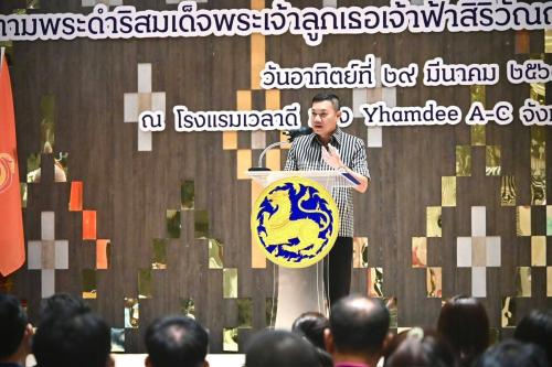 💠 ปลัดกระทรวงมหาดไทย กล่าวว่า สมเด็จพระเจ้าลูกเธอ เจ้าฟ้าสิริวัณณวรี นารีรัตนราชกัญญา ทรงมีพระวิริยะอุตสาหะในการสนองงานแบ่งเบาพระราชภารกิจของพระบาทสมเด็จพระเจ้าอยู่หัว และสมเด็จพระนางเจ้าฯ พระบรมราชินี ในการสืบสาน รักษา และต่อยอด พระราชปณิธานของพระบาทสมเด็จพระบรมชนกาธิเบศร มหาภูมิพลอดุลยเดชมหาราช บรมนาถบพิตร และสมเด็จพระนางเจ้าสิริกิติ์ พระบรมราชินีนาถ พระบรมราชชนนีพันปีหลวง ในการอนุรักษ์ ฟื้นฟู ศิลปวัฒนธรรม ภูมิปัญญาหัตถกรรมไทยให้ดำรงอยู่อย่างยั่งยืน ซึ่งสำนักงานปลัดกระทรวงมหาดไทยได้เลือกจุดดำเนินการ ณ จังหวัดนครพนม ด้วยรำลึกในพระมหากรุณาธิคุณสมเด็จพระนางเจ้าสิริกิติ์ พระบรมราชินีนาถ พระบรมราชชนนีพันปีหลวง ที่เสด็จพระราชดำเนิน ณ บ้านนาหว้า อ.นาหว้า จ.นครพนม เพื่อทรงช่วยเหลือราษฎรที่ประสบความเดือดร้อนจากอุทกภัย เมื่อปี 2513 และพระราชทานพระมหากรุณาขยายผลจนเกิดเป็นศูนย์ศิลปาชีพแห่งแรกในสมเด็จพระนางเจ้าสิริกิติ์ พระบรมราชินีนาถ ณ วัดพระธาตุประสิทธิ์ และได้รับการพัฒนาเป็นมูลนิธิส่งเสริมศิลปาชีพฯ ตราบถึงปัจจุบัน จึงขอให้พวกเราทุกคนได้ร่วมกันน้อมนำพระราชปณิธานสู่การถ่ายทอด สืบสาน รักษา ต่อยอด ไปยังน้อง ๆ เยาวชนคนรุ่นใหม่ เพื่อให้มรดกแห่งแผ่นดินนี้ยังคงอยู่คู่ประเทศไทย สร้างงาน สร้างอาชีพ สร้างรายได้ที่มั่นคงให้กับประชาชน สร้างเศรษฐกิจฐานรากที่เข้มแข็ง ทำให้ประชาชนมีคุณภาพชีวิตที่ดีอย่างยั่งยืน