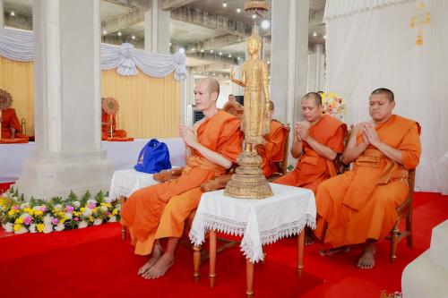 เมื่อถึงศาลาการเปรียญ ผู้แทนพระองค์ ถวายพุ่มหงส์ทอง พุ่มหงส์เงิน และเงินพระราชทาน พร้อมพุ่มเงินผ้าป่าพระตำหนักราชฤทธิ์รุ่งโรจน์ ปิยนาฏวชิรพัทธ์ แด่พระครูสังฆรักษ์วิชา อรุโณ เจ้าอาวาสวัด กับประเคนผ้าไตรแด่พระสงฆ์ 10 รูป และกรวดน้ำ โดยปัจจัยในครั้งนี้จะนำไปใช้ในการก่อสร้างอุโบสถของวัด เพื่อให้พระสงฆ์มีสถานที่ประกอบศาสนกิจทำนุบำรุงพระพุทธศาสนา
